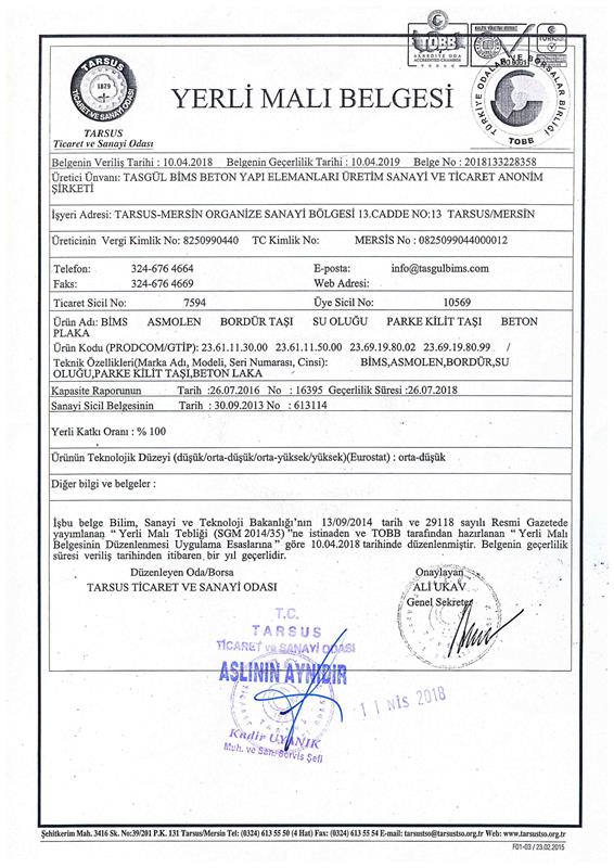 2013 yılından itibaren Mersin-Tarsus Organize Sanayi Bölgesi'nde 3.000 m2 kapalı alan,toplam 30.000 m2 lik fabrkamızla beton yapı elemanları (parke taşı,yağmur oluğu,bordür,bims,briket,asmolen) sektöründe hizmet vermekteyiz.